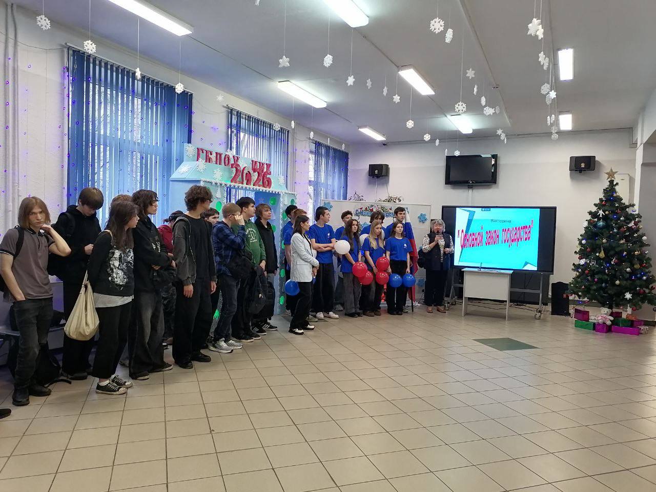 В рамках праздника участники собрались для проведения официальной церемонии, в ходе которой был исполнен гимн Российской Федерации. Далее состоялась познавательная викторина, направленная на проверку знаний основных положений Конституции; в мероприятии активно участвовали как студенты, так и кураторы.